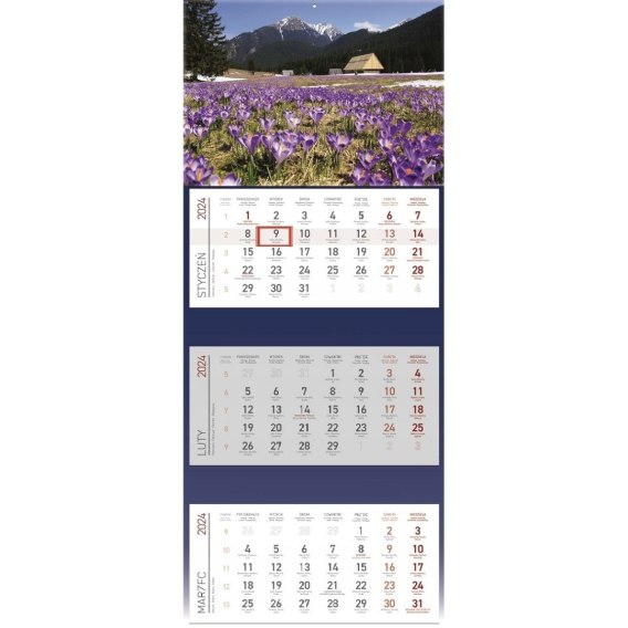 KALENDARZ 2024 rok ŚCIENNY TRÓJDZIELNY Planer motyw Tatry