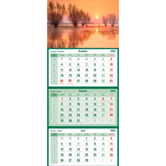 Zostal zaprojektowany w taki sposób, abyś mial  wszystkie niezbedne informacje  pod reką. Uklad kalendarium obejmuje trzy miesiące, co  ulatwia planowanie i monitorowanie waznych dat .