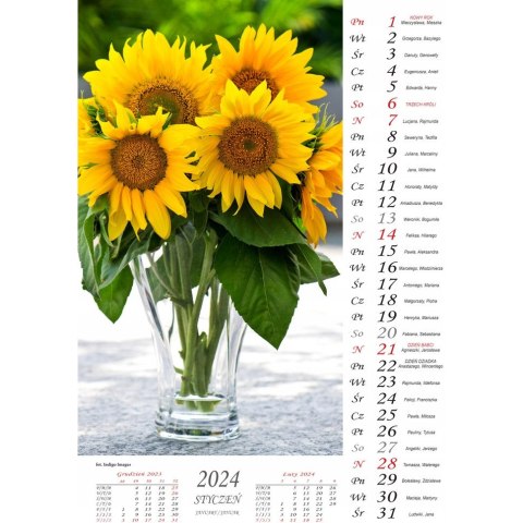 KALENDARZ WIELOPLANSZOWY ŚCIENNY na 2024 rok Kwiaty 29x50,5cm
