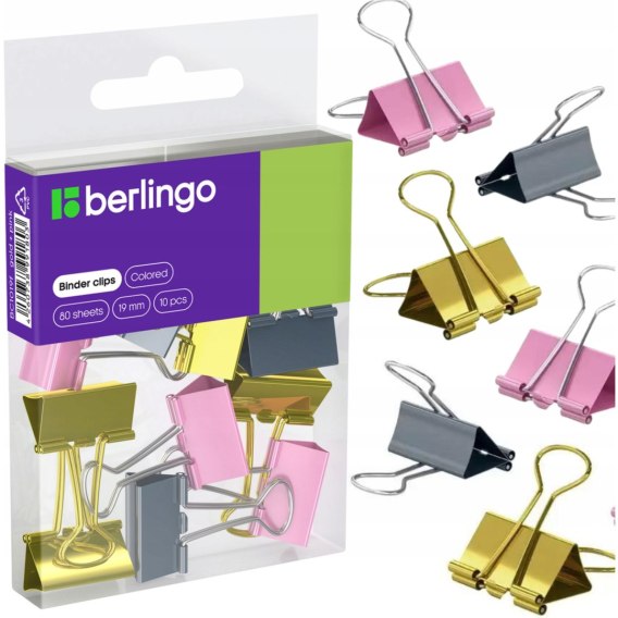 Klipy biurowe do papieru 19mm 10szt. różowe złote i srebrne 330194 BERLINGO