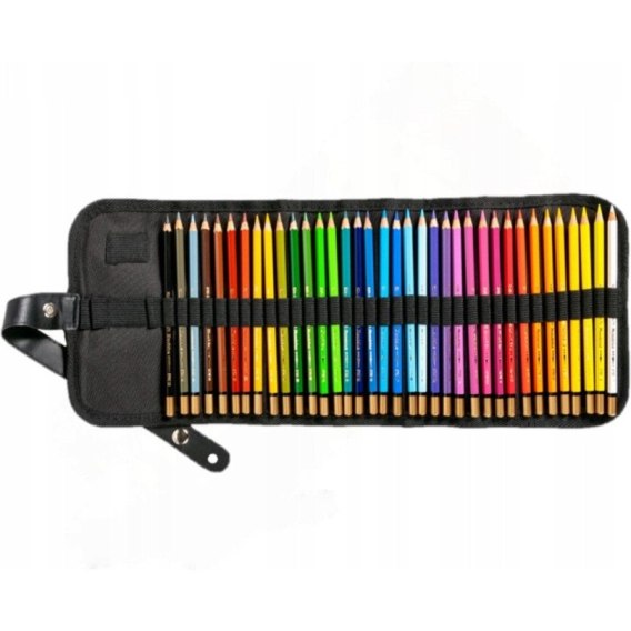 - Zestaw zawiera 36 kolorów spakowanych w zwijane czarne etui.