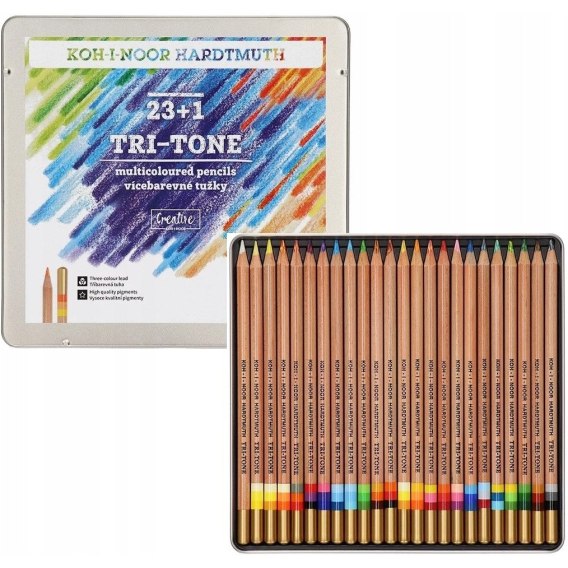 - Zestaw zawiera 23 kredki Tri-Tone oraz blender do mieszania kolorów.