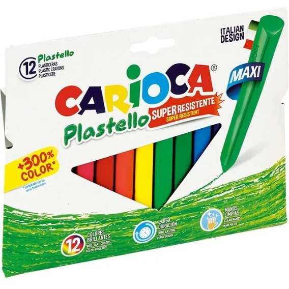 Wysokiej jakości kredki świecowe marki Carioca w zestawie 12 kolorowych kredek.