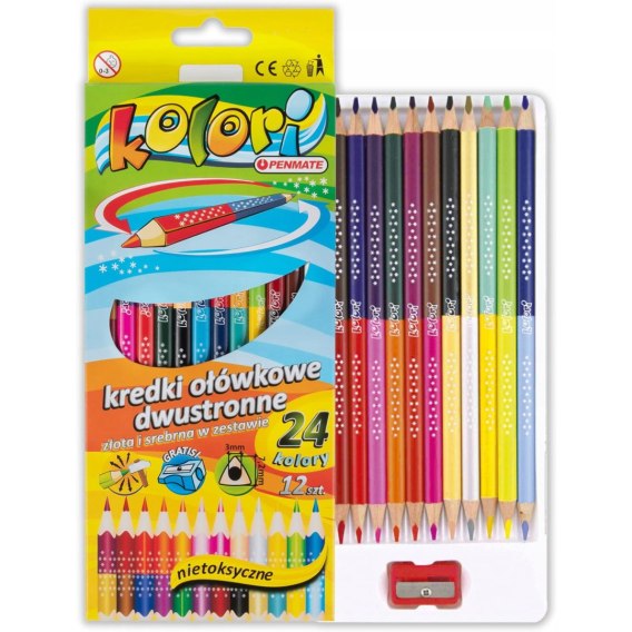 Kredki ołówkowe trójkątne dwustronne 12/24kol Premium Kolori TT7227