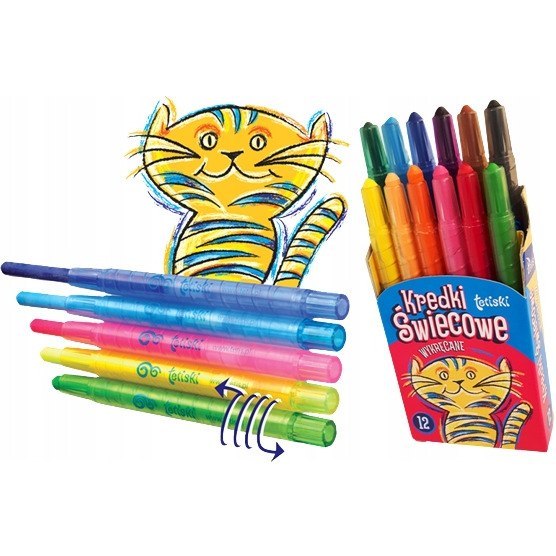 Kredki świecowe wykręcane 12 kolorów TETISKI KT010-AB