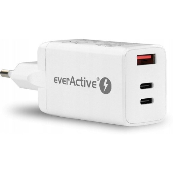 Ładowarka sieciowa 230V EVERACTIVE SC-650Q 1xUSB 3A + 2xUSB-C 3,25A 65W biała