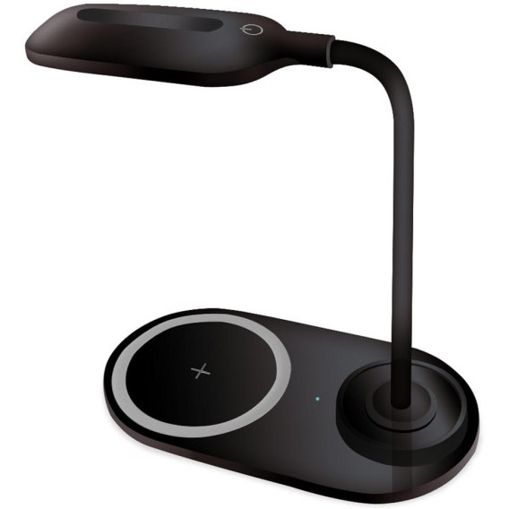 Wielofunkcyjna lampka biurkowa LED z wbudowaną ładowarką bezprzewodową.