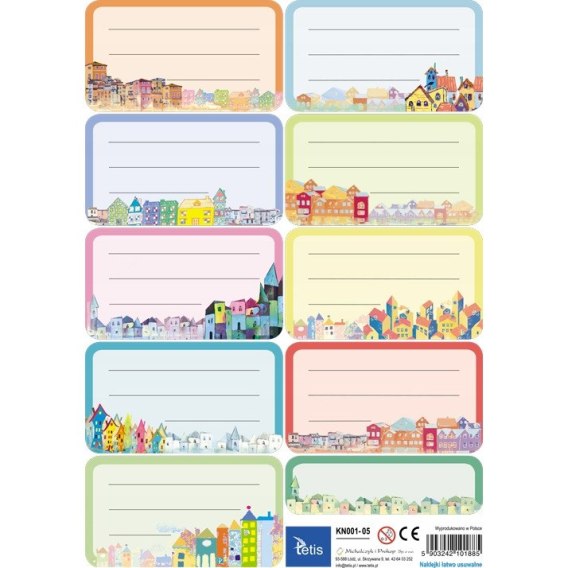 Naklejki na książki i zeszyty 9szt na arkuszu (25ark) KN001-05 TETIS