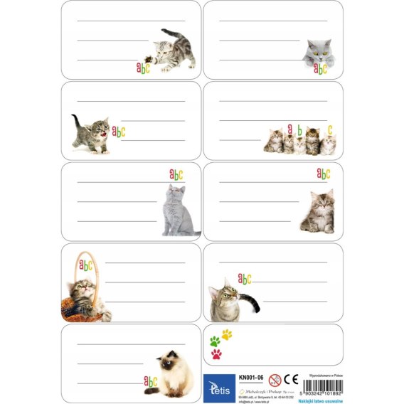Naklejki na zeszyty ksiązki szkolne w koty 25 arkuszy TETIS