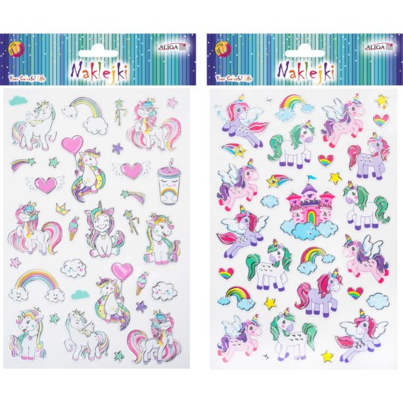 Naklejki wypukłe JEDNOROŻCE mix 14x21cm NK-9098 ALIGA