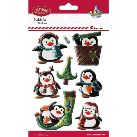 Naklejki wypukłe pingwiny metaliczne mix 7szt. 487030 TITANUM
