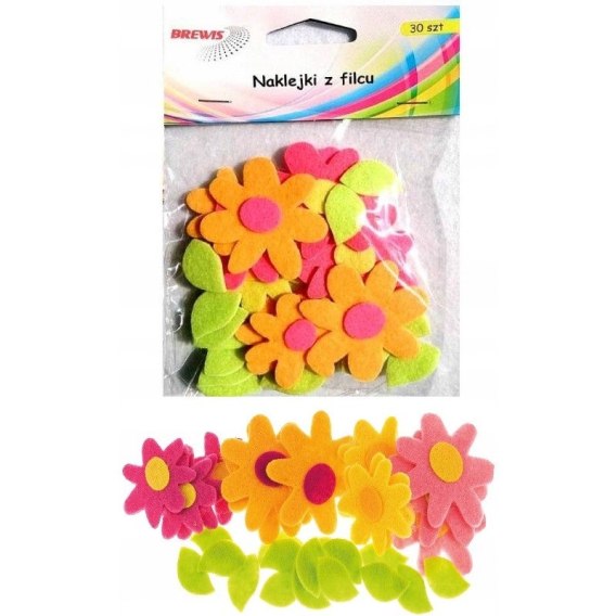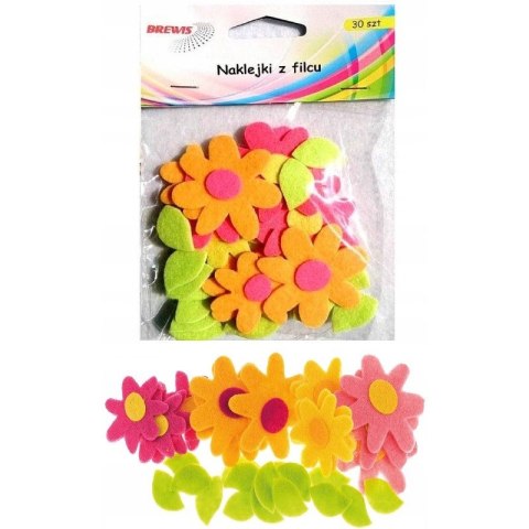 Naklejki z filcu KWIATKI, 30 szt. FVC04 BREWIS