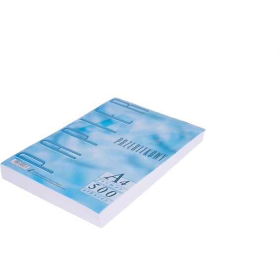 Biały papier o gramaturze 40 g/m2, cienki, lekko przejrzysty. Pakowany po 500 arkuszy w formacie 297x210 mm.