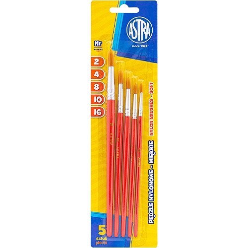 Pędzelki szkolne zestaw 5 sztuk rozmiar nr. 2,4,8,10,16 315023002 ASTRA