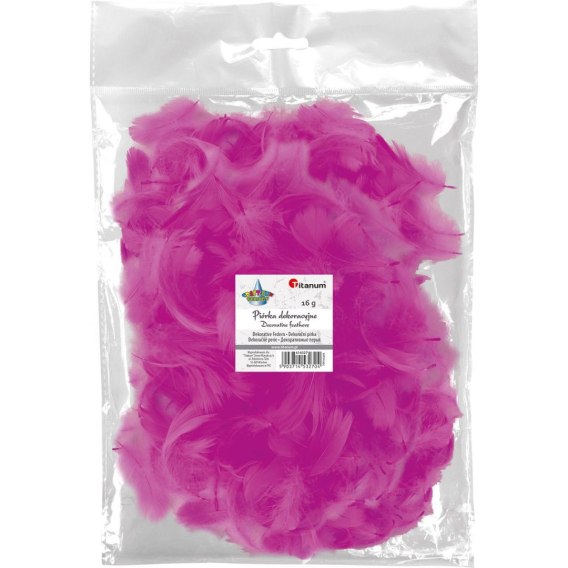 Piórka dekoracyjne, kolor: różowy fluo. Opakowanie 16 g.