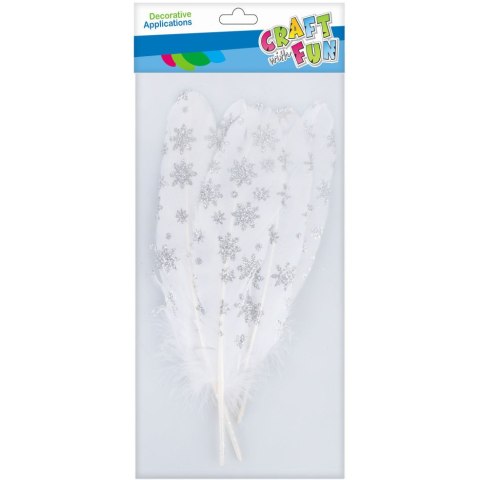 Piórka ozdobne białe w srebrne gwiazdki 17-22cm 6szt. 463655