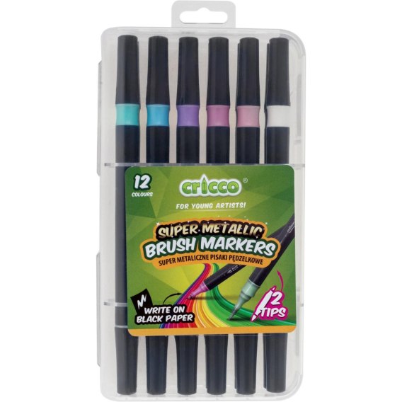 Pisaki metaliczne pędzelkowe dwustronne 12 kolorów CRICCO CR385K12