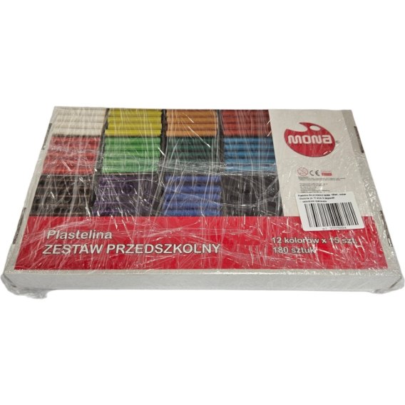 Plastelina dla przedszkoli MONA 180szt. zestaw 12kolorów po 15 sztuk St.Majewski - uszkodzone opakowanie