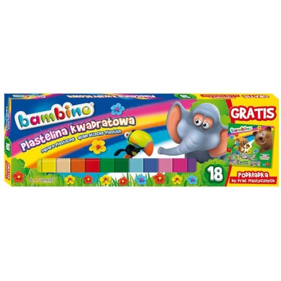 Plastelina kwadratowa dla dzieci Zestaw 18 kolorów + Podkładka BAMBINO St.Majewski