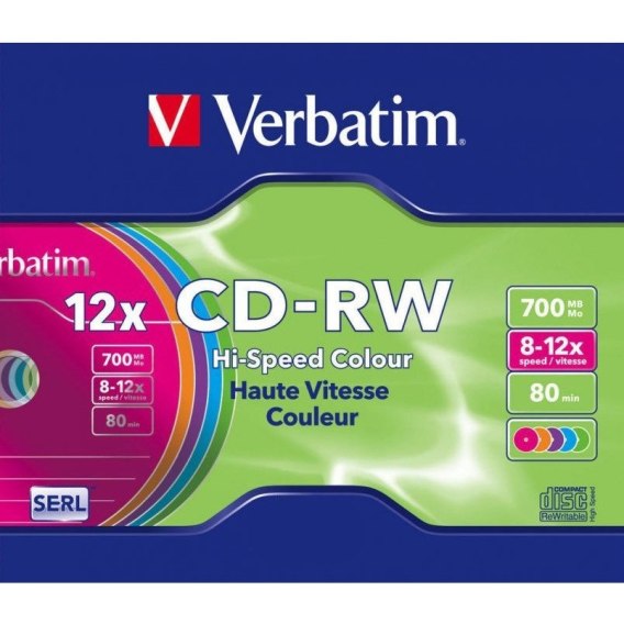 Płyta CD-RW 700MB VERBATIM slim kolor 12x 43167