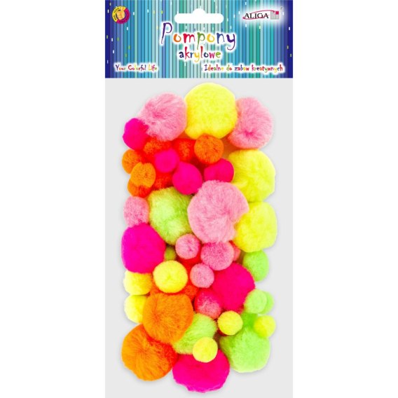 Pompony akrylowe mix kolorów i rozmiarów (50) POM-204 ALIGA