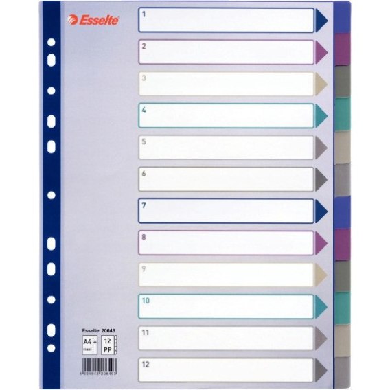 Przekladki A4 MAXI PP MULTICOLOR 12 kart 1-12 20649 ESSELTE