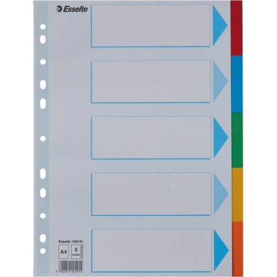 Przekładki karton A4 5 kart ESSELTE 100191 kolorowe z kartą opisową