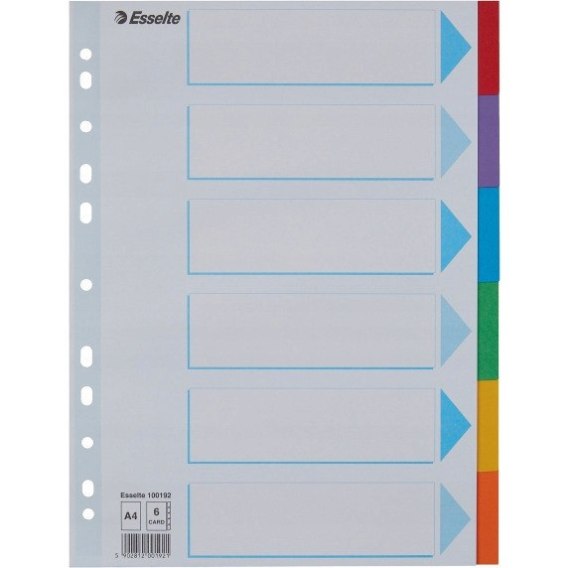 Przekładki karton A4 6 kart ESSELTE 100192 kolorowe z kartą opisową