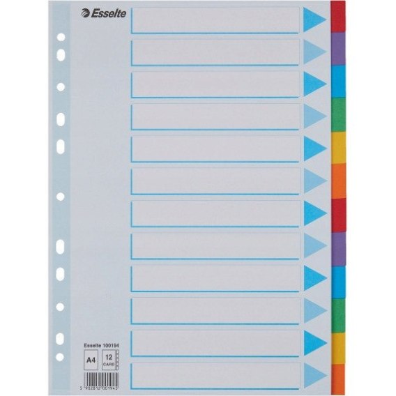 Przekładki kolorowy karton z kartą opisową A4 100194 12 kart ESSELTE