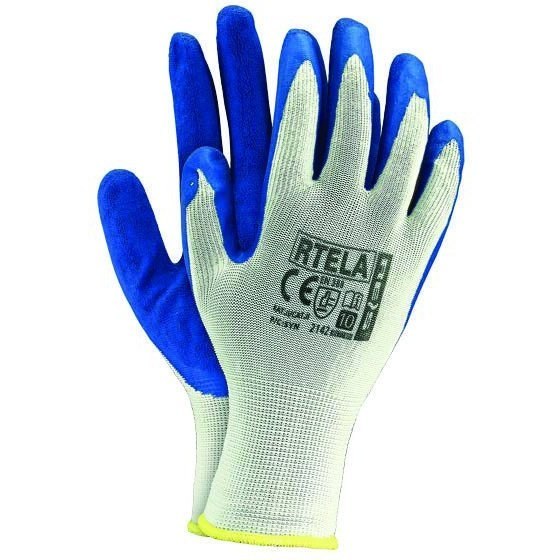 Rękawice REIS RTELA WN poliestrowe powlekane lateksem biało-niebieski roz.11/XXL