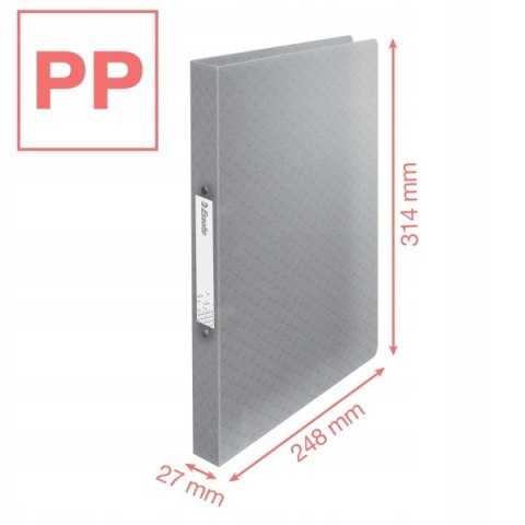 Wykonany jest z elastycznego, latwego do czyszczenia polipropylenu. Posiada 2 okrągle ringi, które umozliwiają latwe przewracanie stron oraz wygodne wyjmowanie i dokladanie kartek oraz etykiete na grzbiecie do opisu zawartości.
