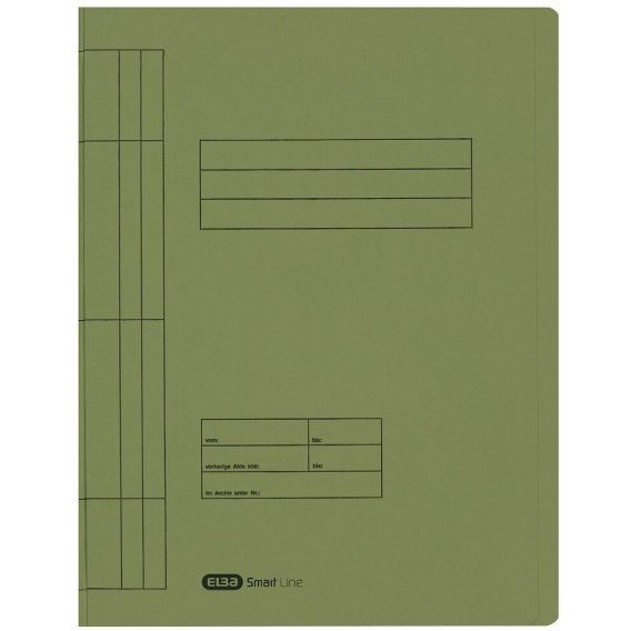 Skoroszyt w formacie A4, wykonany z zielonego kartonu Manilla barwionego w masie. Na frontowej okladce znajduje sie pole do opisu zawartości. Specjalne bigowanie na grzbiecie umozliwia jego poszerzenie dla zwiekszenia pojemności. Metalowe wąsy dobrze mocują dokumenty, co zapobiega ich wypadaniu.