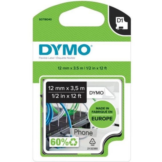 Taśma DYMO D1 - 12 mm x 3.5 m - NYLONOWA, czarny / biały, S0718040 / 16957