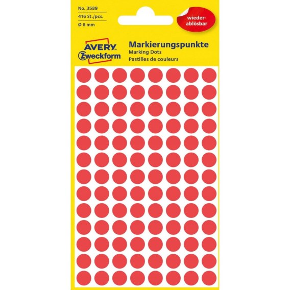 Usuwalne kółka Q8mm 416szt./op. czerwone 3589 AVERY ZWECKFORM