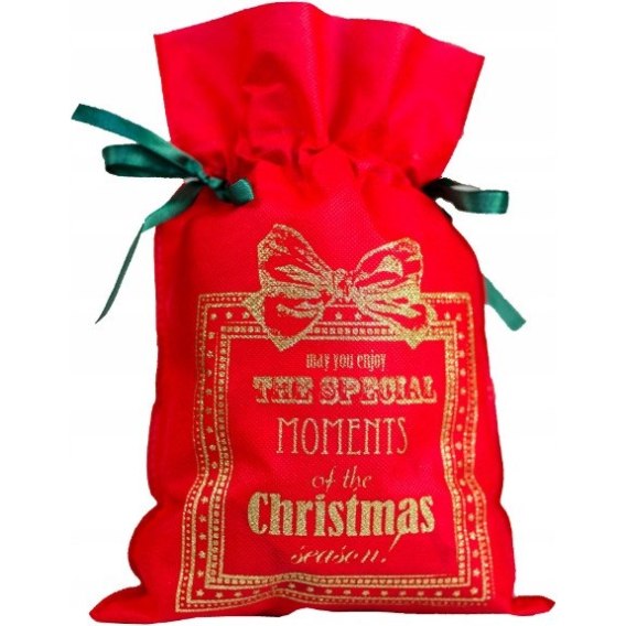 Worek upominkowy materiałowy czerwony ZŁOTE NAPISY 40x56cm PaKaDo