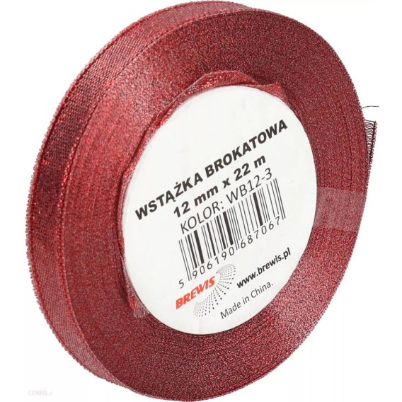 Wstążka brokatowa czerwona 12mm WB12-3 (2) BREWIS