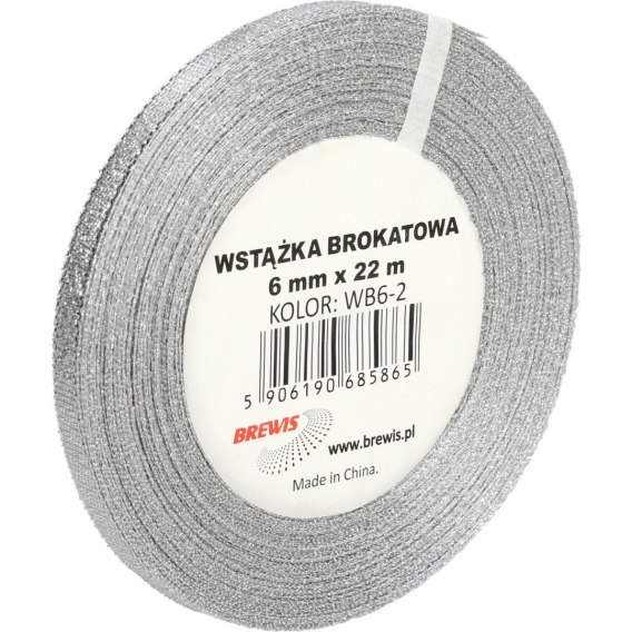 Wstążka brokatowa srebrna 6mm(2szt) WB6-2 BREWIS