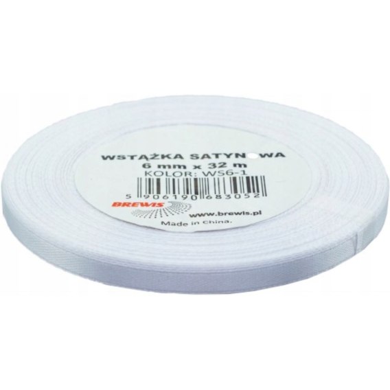 Wstążka satynowa 6mm/32m biała ws6-1 BREWIS