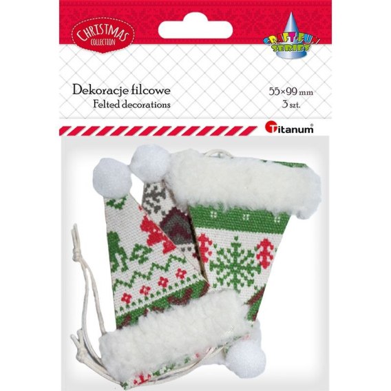 Zawieszki filcowe czapki z pomponem 3szt 388821 TITANUM