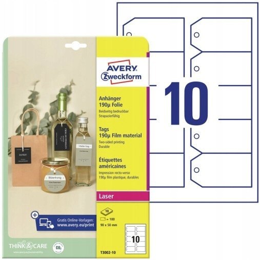 Biale, dwustronne zawieszki foliowe Avery Zweckform są idealne np. dla malych firm i niezaleznych sprzedawców detalicznych do oznaczania produktów.