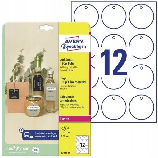 Biale, dwustronne zawieszki foliowe Avery Zweckform są idealne np. dla malych firm i niezaleznych sprzedawców detalicznych do oznaczania produktów.