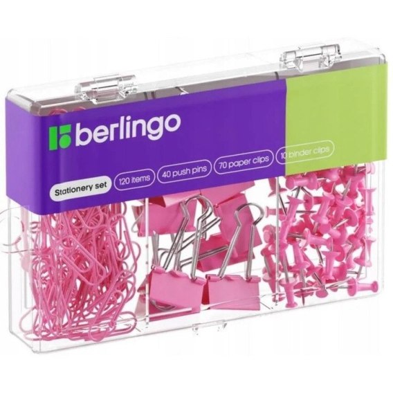 Zestaw 40 pinezek 70 spinaczy 10 klipów różowy 353631 BERLINGO