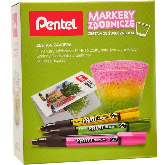 Zestaw ŚWIECZNIK+marker olej.żółty/róż/seledy MMP20GKP PENTEL