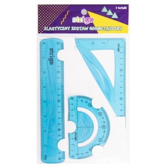 ZESTAW GEOMETRYCZNY elastyczny STRIGO niebieski LINIJKA EKIERKA K?TOMIERZ