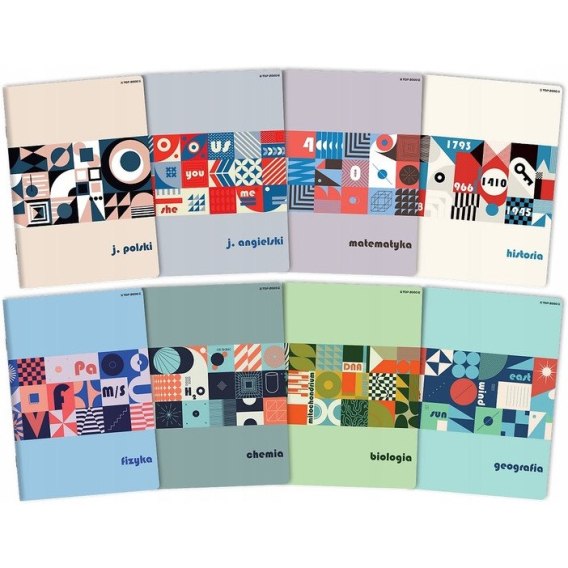 Zestaw zeszytów A5 60k (8szt) j.polski matematyka biologia historia j.angielski geografia chemia fizyka TOP 2000